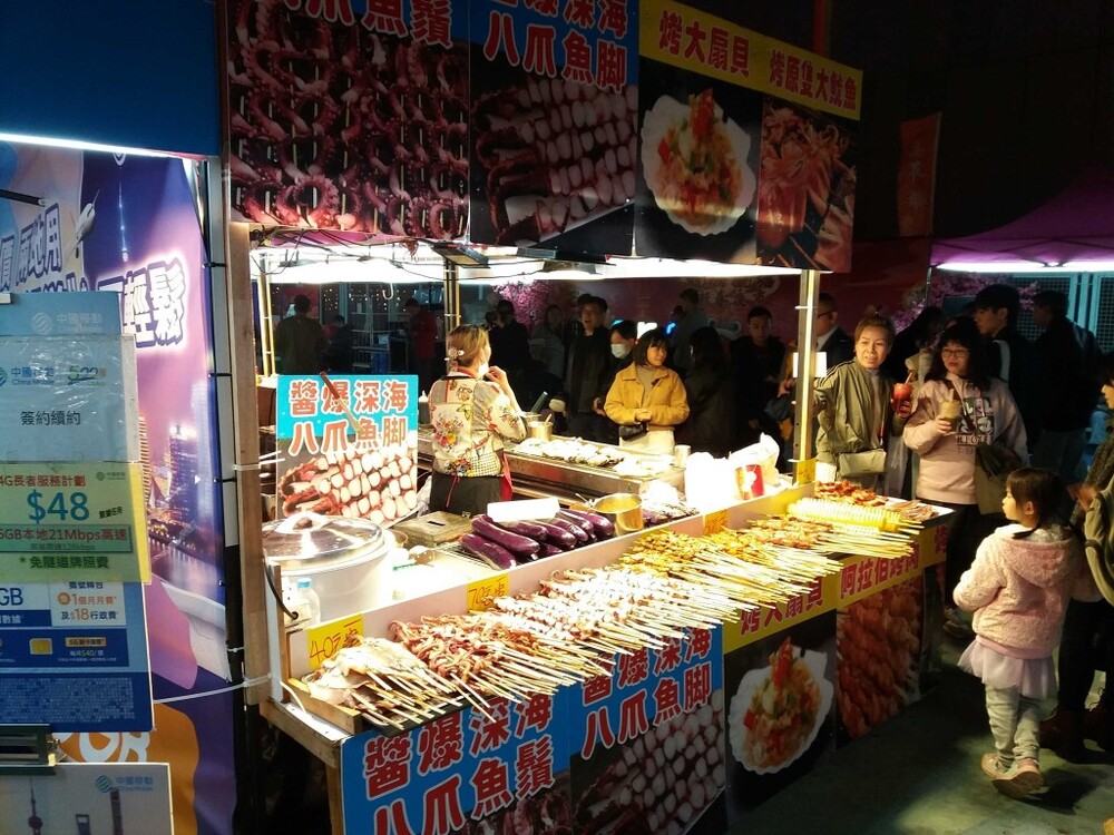 Located at the Kwun Tong Town Centre "Free Space," the market offers various street snacks such as fried sausage, pan-fried buns, oyster omelets, stinky tofu, grilled scallops, and grilled squid.