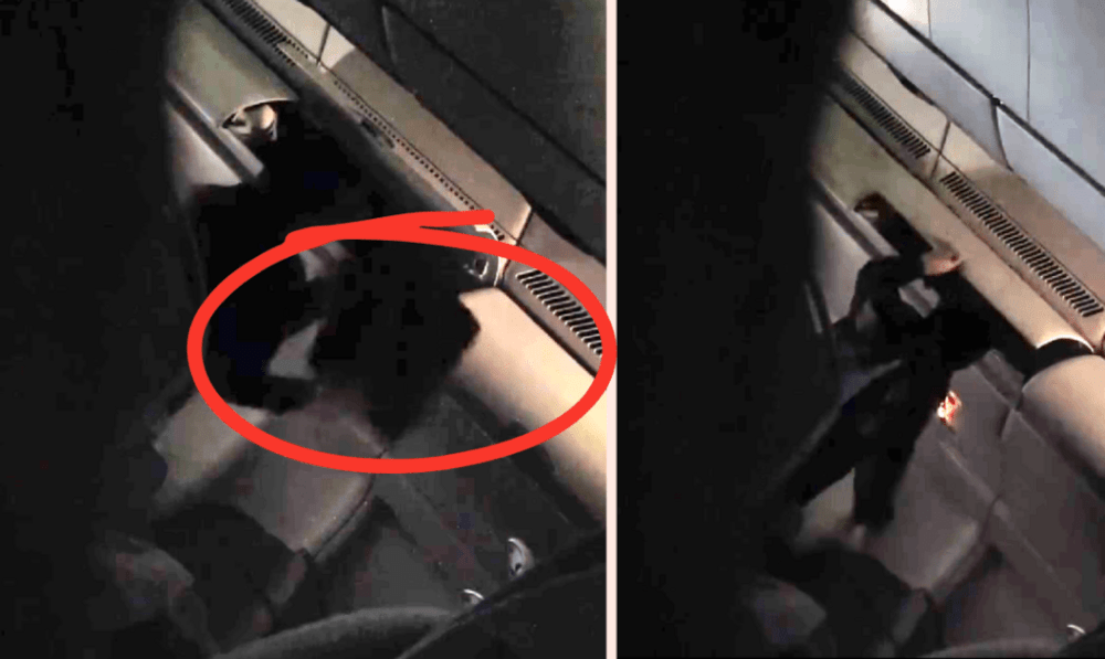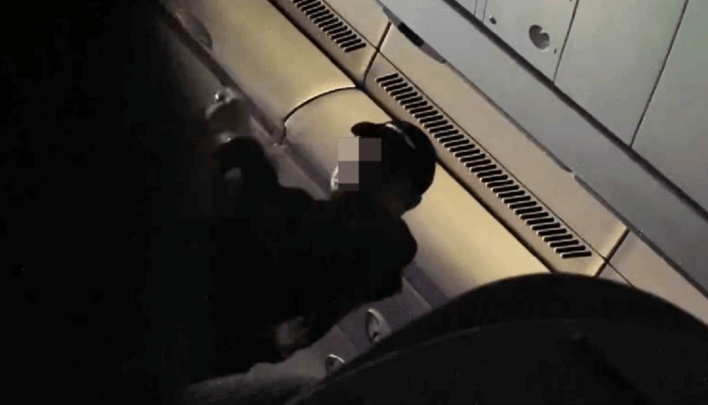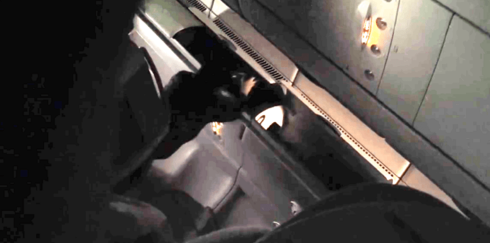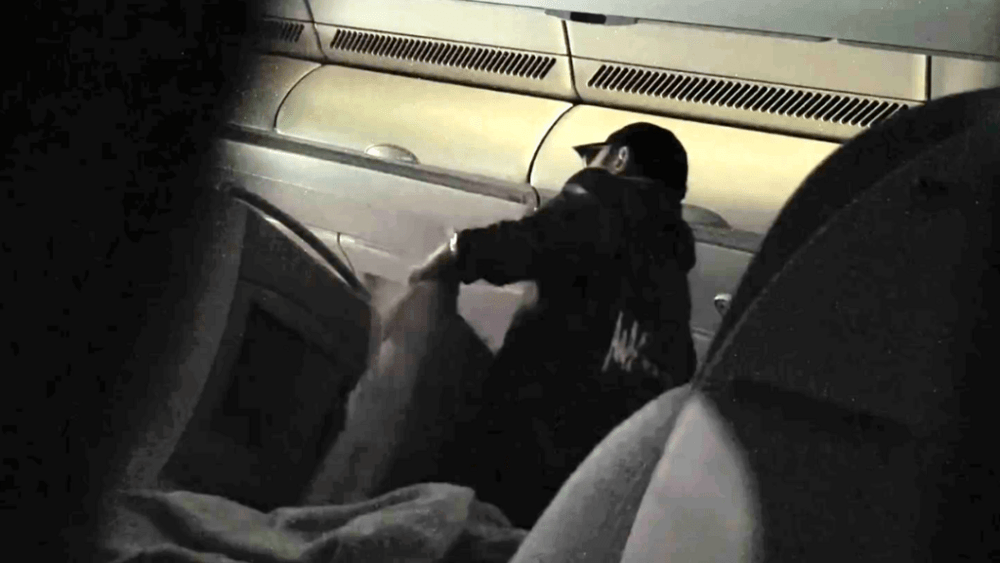 The second clip captured the moment when the man attempted to get a briefcase from the overhead compartments in the front row.