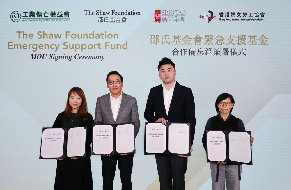 The Shaw Foundation has partnered with Sing Tao News Corporation, the Association for the Rights of Industrial Accident Victims, and the Hong Kong Women Workers’ Association to establish "The Shaw Foundation Emergency Support Fund".