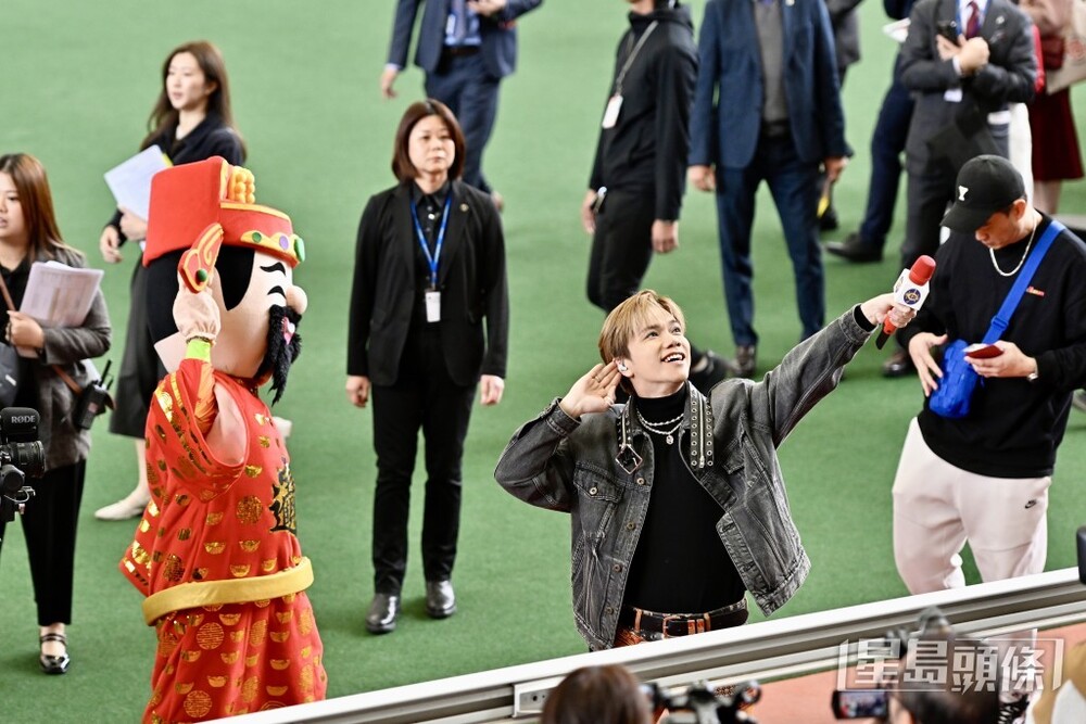 The jockeys also participated, holding fai chun and greeting the racing fans in Cantonese. Many fans gathered in the stands to watch the ceremony.