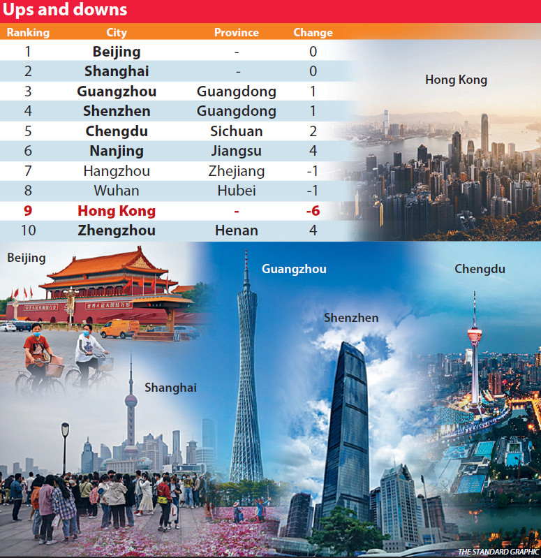 Hong Kong has been leapfrogged by Guangzhou, Shenzhen and a few second-tier cities to place ninth in a ranking of 42 Chinese cities with regional opportunities, while the SAR topped the others for resilience to absorb shocks and stresses, mainland research shows.