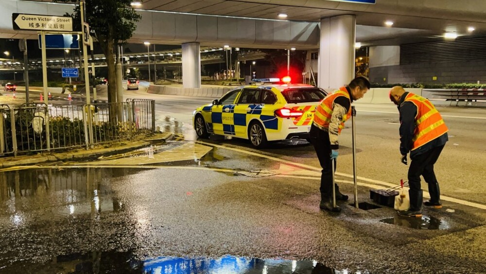 The incident occurred around 11pm on Tuesday when the Water Supplies Department received a report of a water pipe leak on Connaught Road Central in Central.