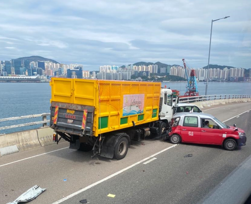 It was learned that the 35-year-old truck driver, surnamed Yim, was trapped in the vehicle after the accident and she was rushed to the Eastern Hospital in unconscious state. The 54-year-old taxi driver, surnamed Poon, was also sent to the hospital for treatment.