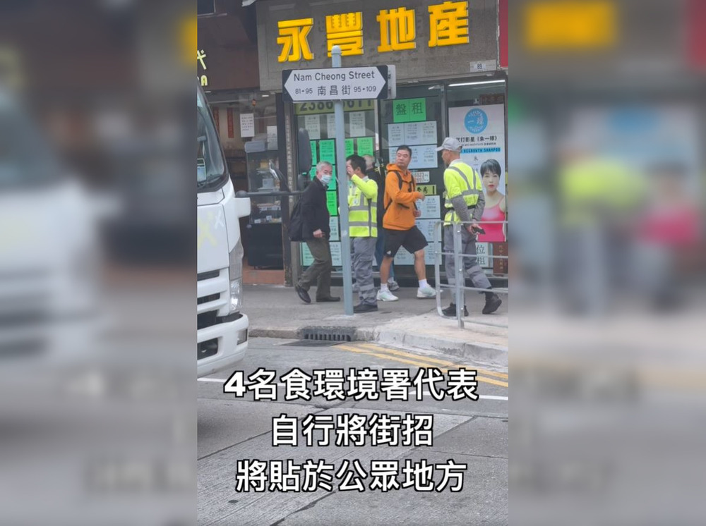 Netizen Roni Wong posted a video on Facebook on Monday, with the footage capturing the four workers in FEHD contractor uniforms allegedly bill posting on lamp posts near the junction of Cheung Sha Wan Road and Nam Cheong Street in Sham Shui Po.
