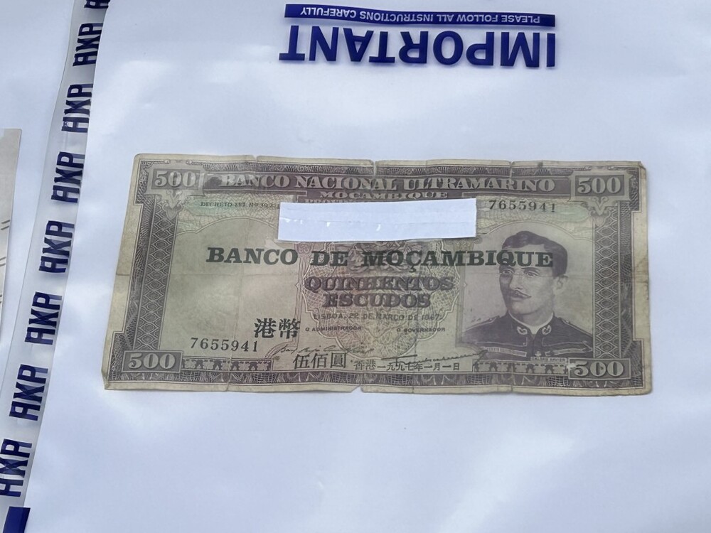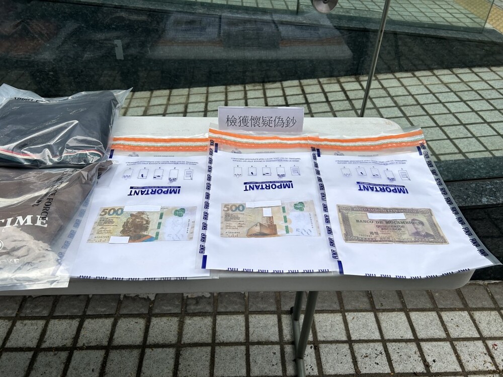 Among the three counterfeit banknotes seized, two were based on genuine currency, while the third was an old banknote from an African country with the Chinese words “Five Hundred Hong Kong Dollars” printed on it.