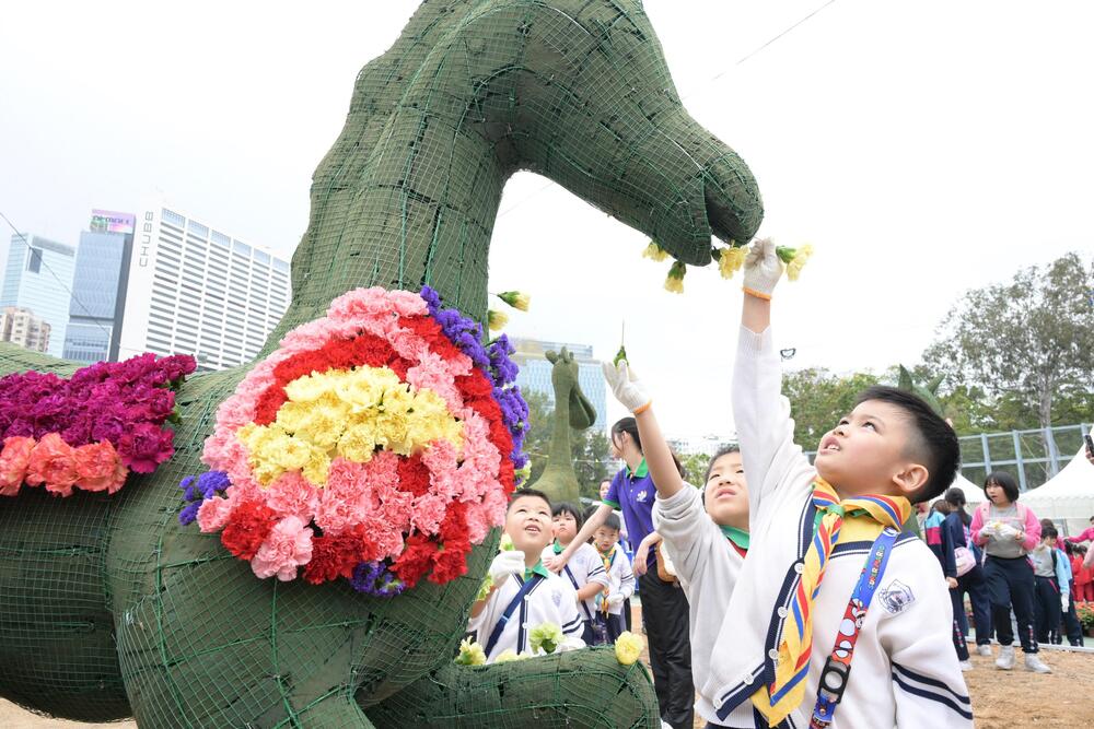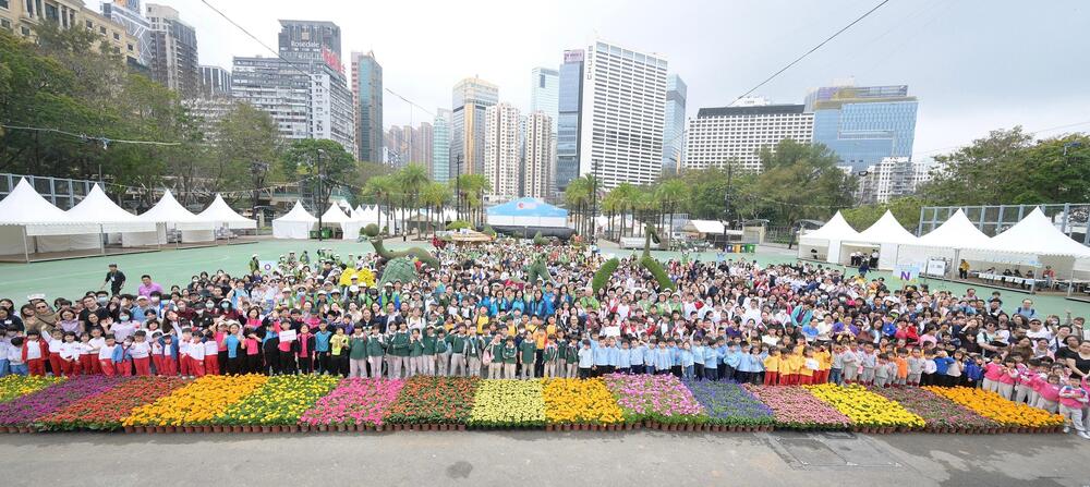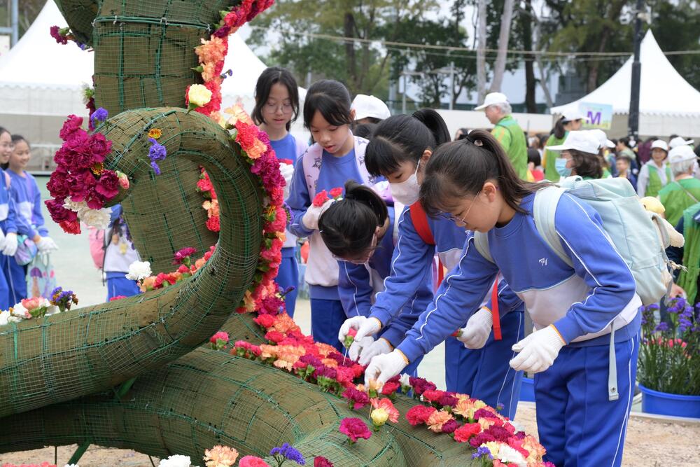 Over 1,100 students from 38 educational institutions, including kindergartens, primary, secondary, and special schools, participated in the Jockey Club Mosaiculture Display by Students activity at Victoria Park on Saturday, March 1.