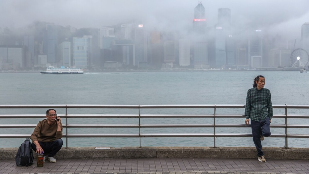Victoria Harbour experienced a foggy morning on Sunday as a warm and humid maritime airstream affected the coast of Guangdong, reducing visibility to around 2,000 meters.