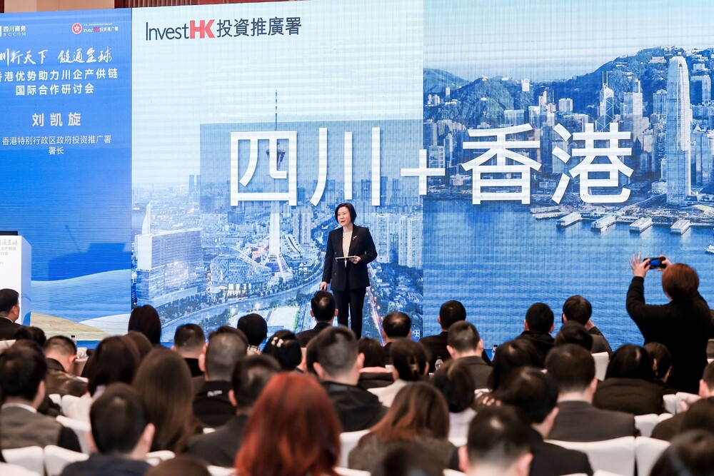 The seminar, organized by InvestHK, the Sichuan Provincial Department of Commerce, and the Commercial Office of the Economic Affairs Department of the Liaison Office of the Central People's Government in Hong Kong, attracted around 150 representatives from local enterprises, institutions, and media.