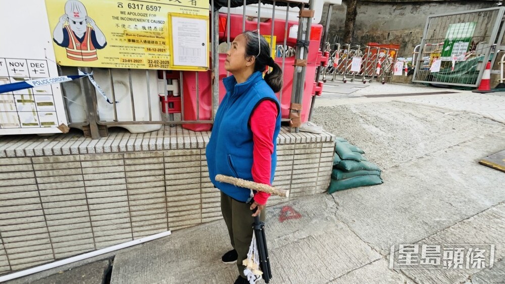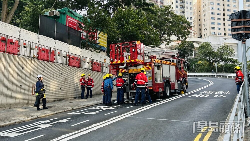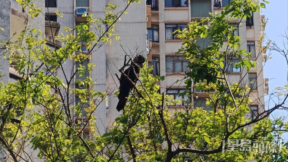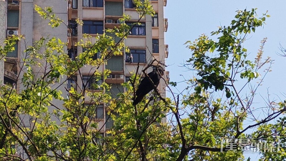 She was spotted on a tree near Fortress Garden in North Point at around 8am this morning, with firefighters called to the scene to help with the rescue.