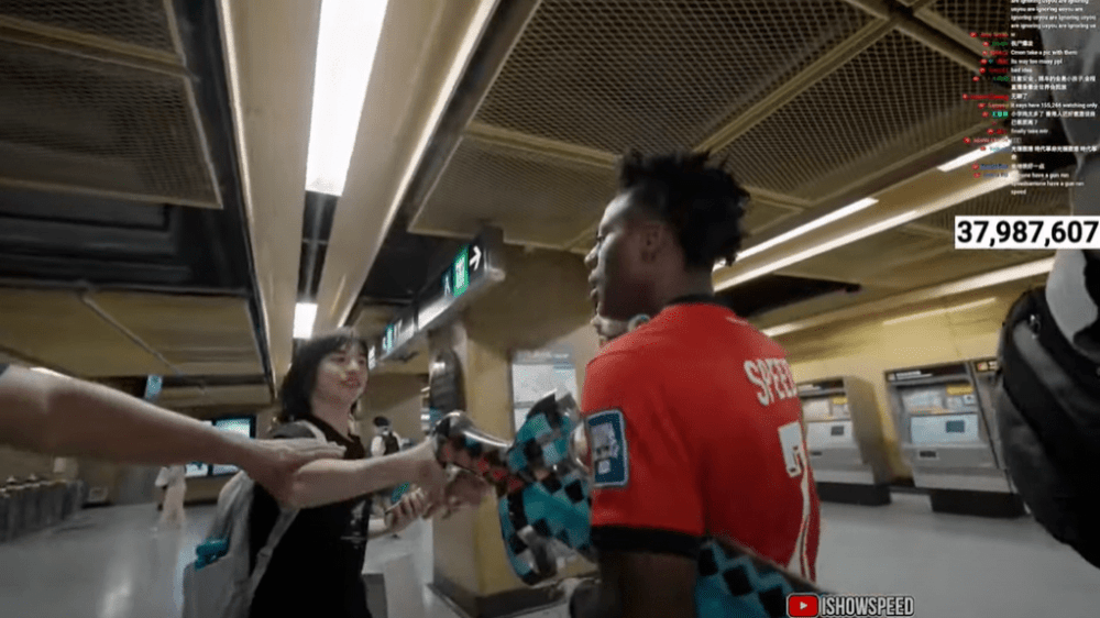 The day took a hectic turn when 'IShowSpeed,' after dangerously leaning out of a tram on Hong Kong Island with a toy sword to interact with passengers on another tram, boarded the MTR at Sheung Wan station heading towards Tin Hau.