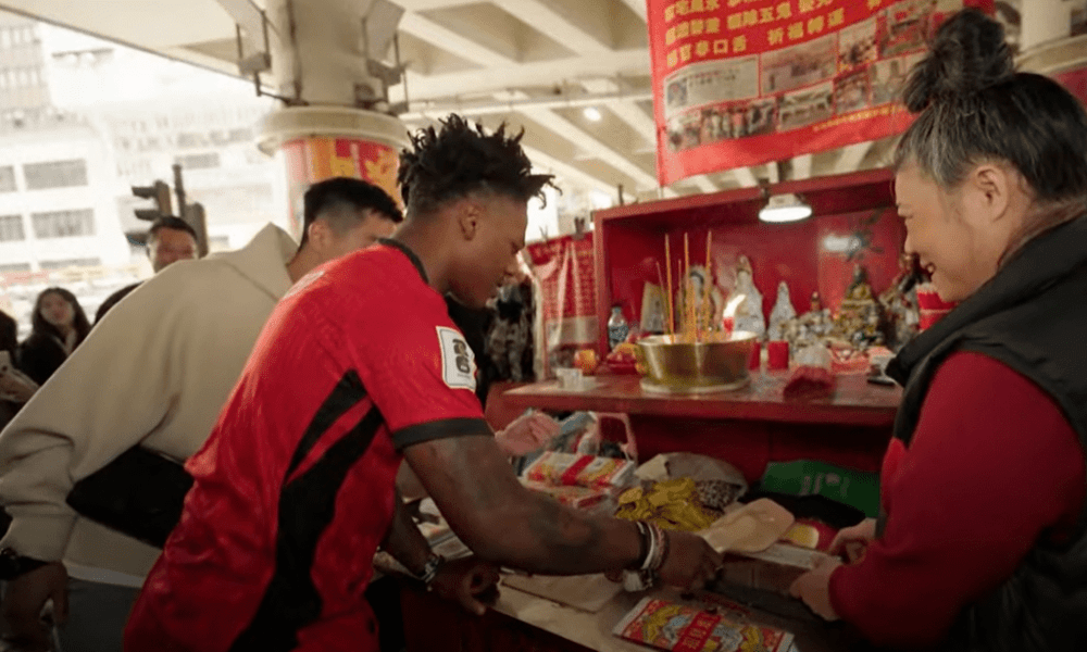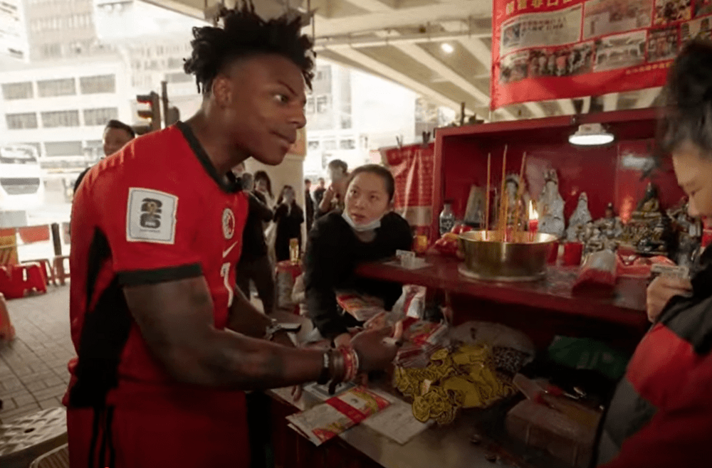 During his time in Hong Kong today, IShowSpeed immersed himself in the local culture. His day began at Times Square in Causeway Bay, followed by an intriguing participation in the traditional practice of "villain hitting" at the Goose Neck Bridge in Wan Chai, where he used shoes as part of the ritual.