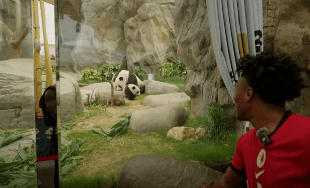 The highlight of his visit was at Ocean Park, where he encountered giant pandas for the first time. Visibly amazed, he exclaimed, "I can't believe these are real animals!" He also had the opportunity to feed penguins under the supervision of park staff, adding to his unique experiences.