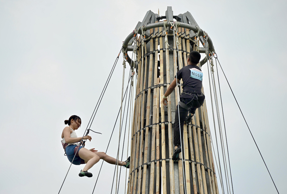 During the session - a qualifying requirement, the competitors learned the safety protocols for climbing the 14-meter bun tower at the Pak Tai Temple Playground.