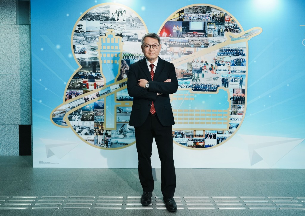 Woo Ying-ming celebrates the department's centennial anniversary with officials including Chief Secretary Matthew Cheung; Woo, far right, in his early days with a colleague; and the commissioner in his office.
