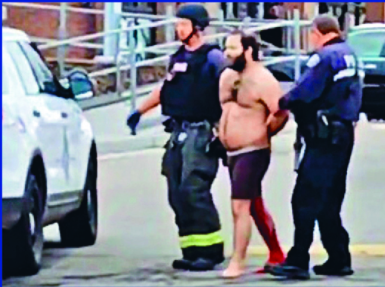 Live-streamed video earlier showed a white middle-aged man - shirtless and with a bloodied leg - detained by police. A suspect was the only person suffering "serious injuries at this point," police said.