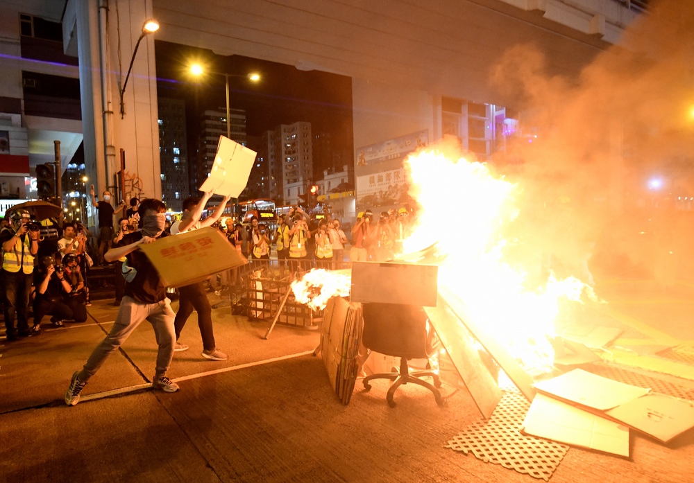 Siu threw debris into a fire in a protest outside Mong Kok police station on September 22, 2019.