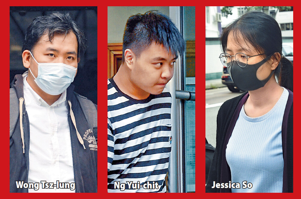 The three - teacher Jessica So Wai-sin, 26, social worker Ng Yui-chit, 24, and cook Wong Tsz-lung, 32 - were convicted of false imprisonment and illegal assembly for stopping the 30-year-old woman when she was filming protesters in Mong Kok on July 7, 2019.