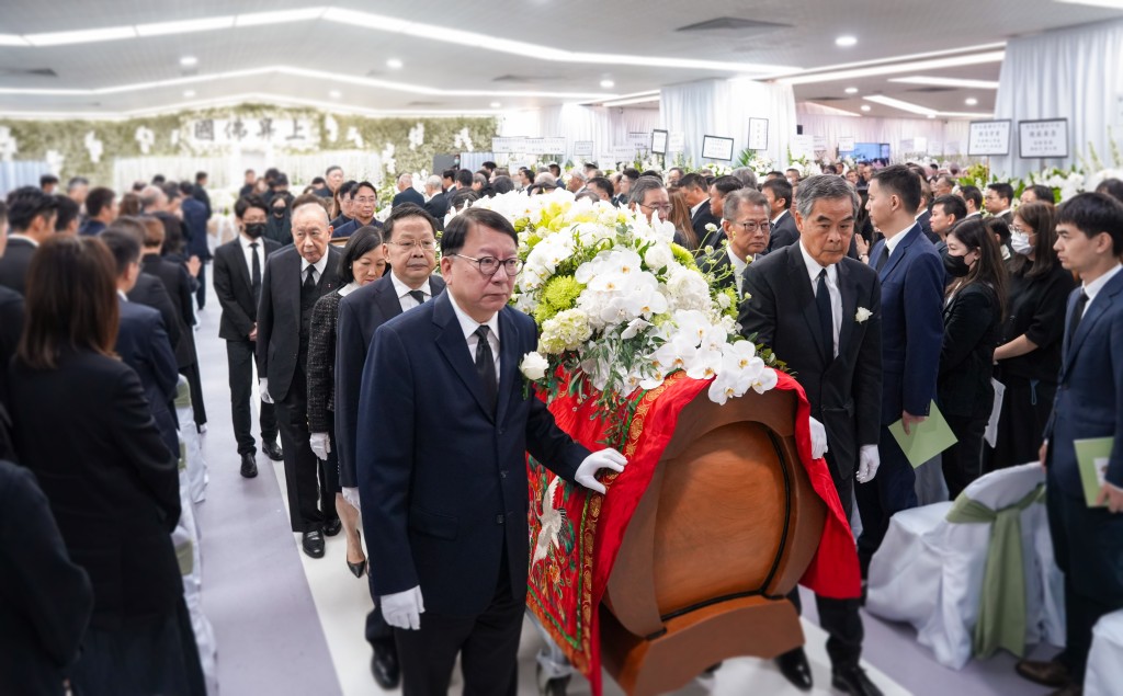 The memorial proceedings began with a private vigil at Hong Kong Funeral Home in North Point on Sunday, attended by prominent figures across the political and business circles.