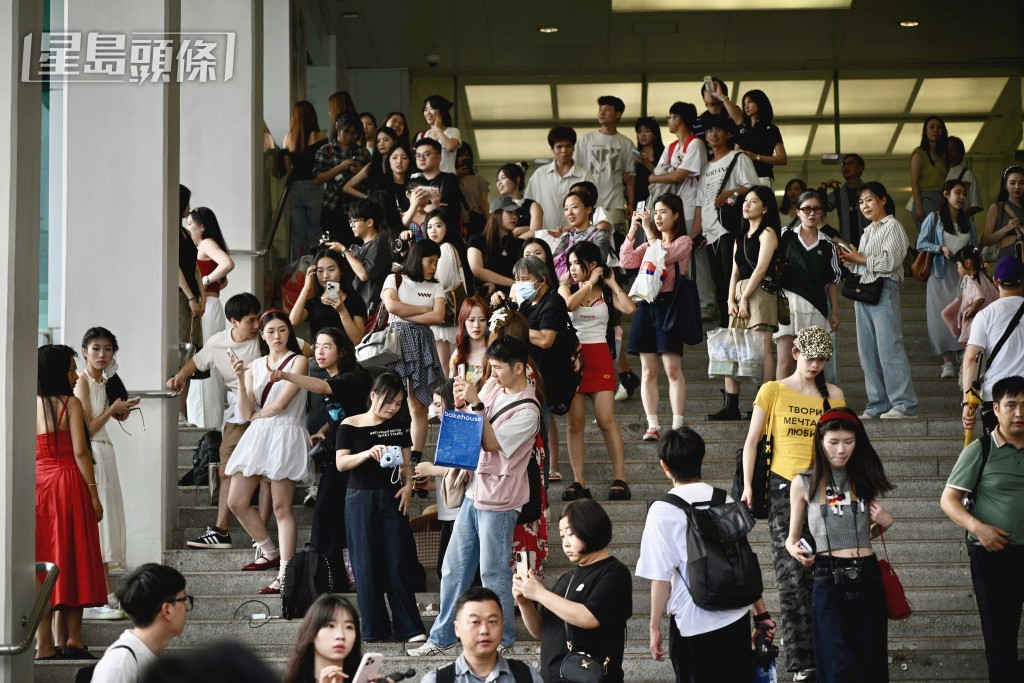 The overwhelming crowds have turned Tsim Sha Tsui into a hotspot for online discussion. A netizen on Threads shared photos of the area, where heaps of tourists swarmed the roads near the Space Museum.