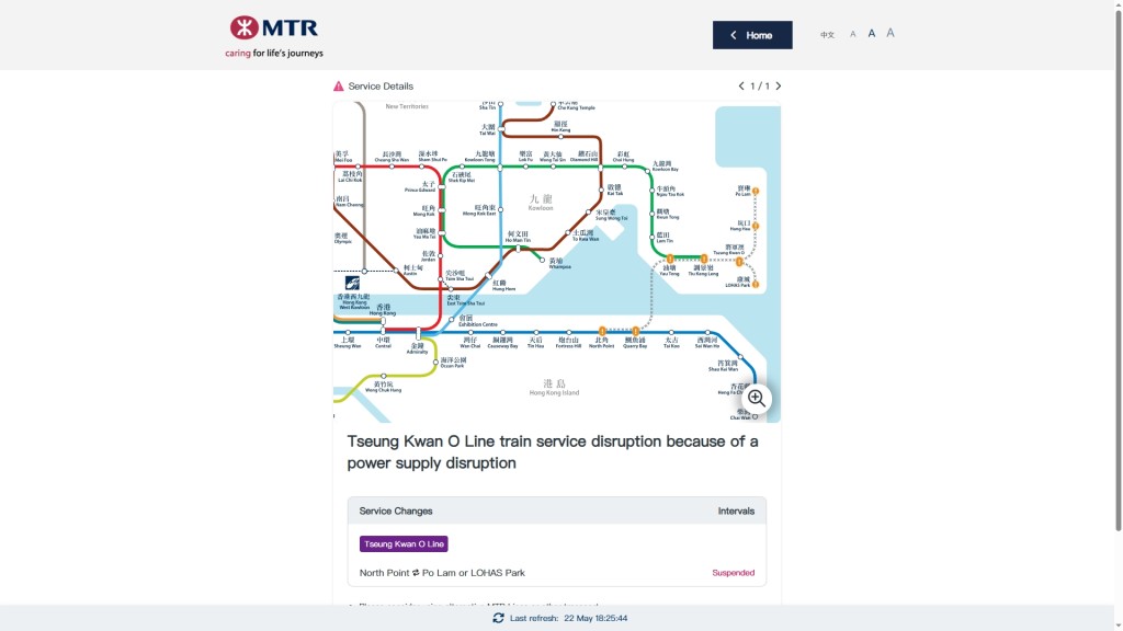 The rail operator reported the incident at 5.22pm, confirming an electrical fault between North Point and Tiu Keng Leng stations that triggered the automatic circuit breaker.