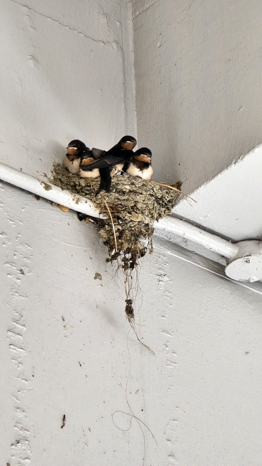 The site had previously hosted three to four swallow nests until a mall renovation several years ago removed them. Locals were delighted when swallows returned last year, successfully raising four young ones. This year, another four hatchlings were born in mid-April before the nest's sudden destruction.