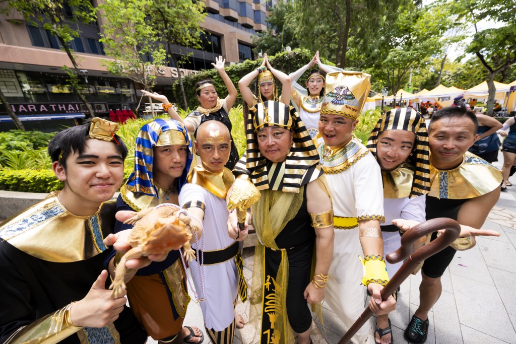 Benny, a first-time participant dressed as an Egyptian pharaoh, explained that the symbol represented “miracle,” expressing hope for an outstanding performance.