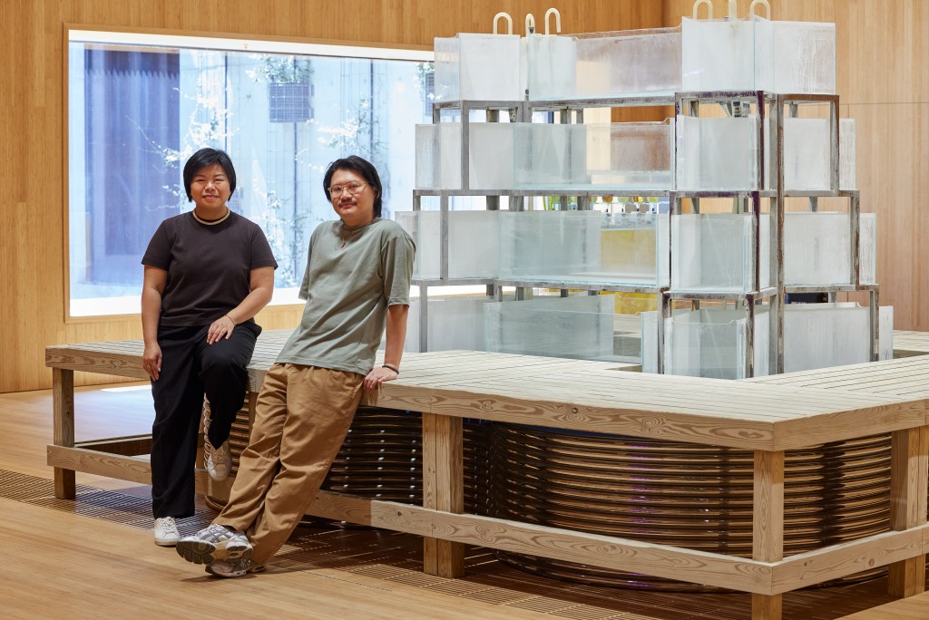 Raised and based in Hong Kong, Yeung draws inspiration from his surroundings—pet shops, his father’s seafood restaurant, public fountains, feng shui arrangements, and even his childhood pet fish.