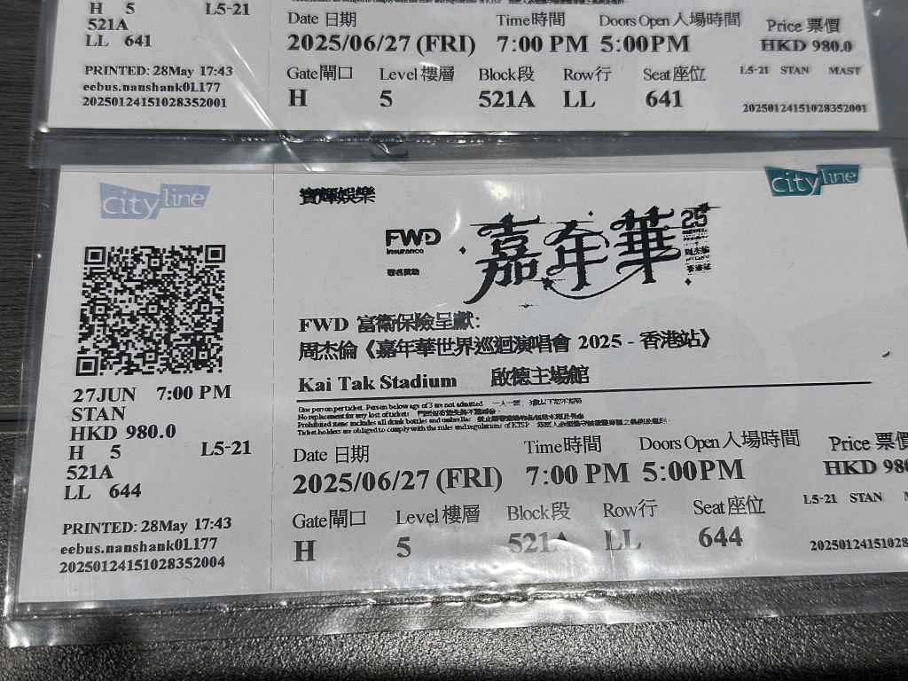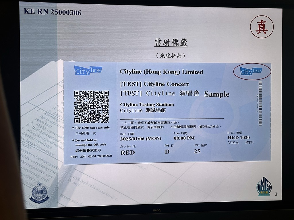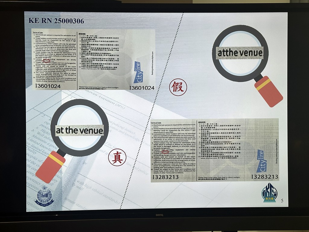 As more concerts are scheduled to take place since the opening of Kai Tak Sports Park in March, the police have highlighted common features of counterfeit tickets to prevent citizens from falling victim, which include hologram stickers, invisible security ink, smooth paper, and clear font printing.