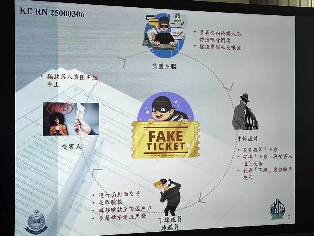 After mass-producing counterfeit tickets at cross-border factories, key members will recruit delivery agents to arrange in-person trading with victims.