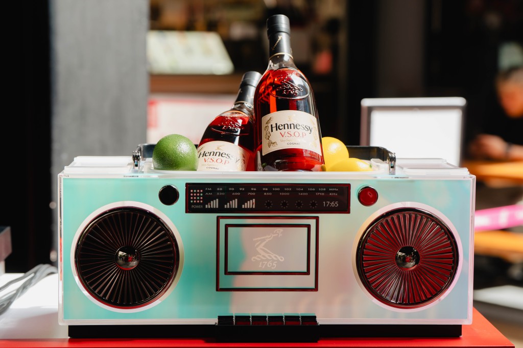 Beyond drinks, the mart features limited-edition Hennessy x NBA bottles and streetwear collaborations with Daömey and Mitchell & Ness. Visitors buying bottles can also spin a Gashapon machine for surprise gifts.