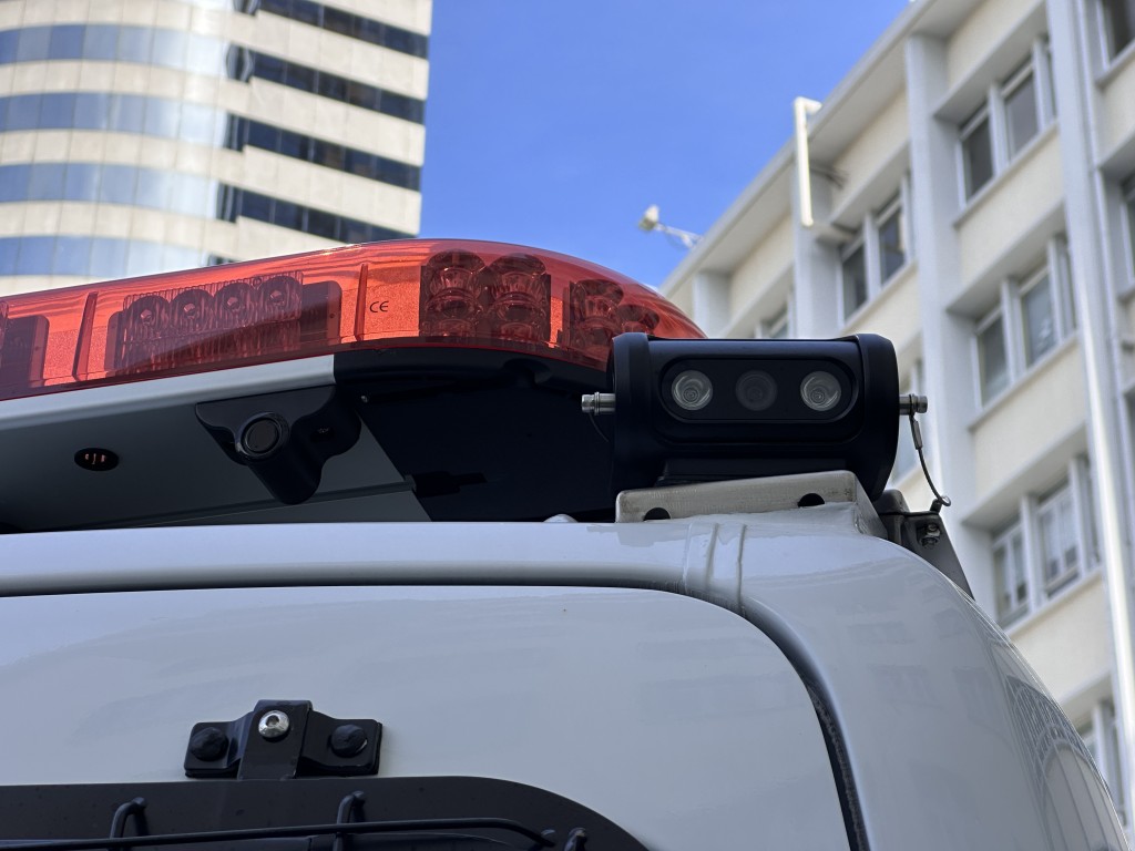 The mobile CCTV unit, unveiled at a press conference, features two fixed-position cameras on top of the vehicle, mounted on the front-left and rear-right sides. They cannot zoom in, zoom out, tilt or pan.