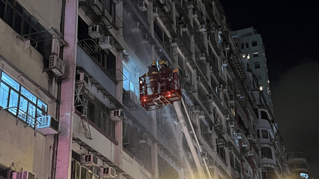 The incident occurred at around 11pm yesterday at Kin Wong Mansion Phase 2 on Sai Yee Street. Multiple residents reported seeing smoke and flames coming from a third-floor unit.