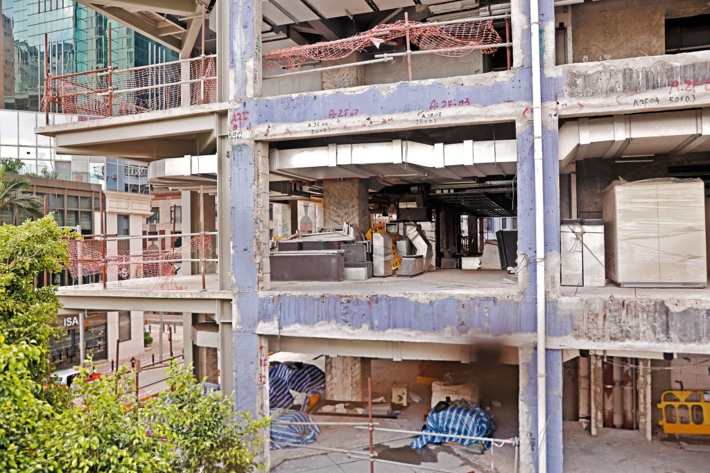 A recent site inspection by East Week, a sister publication of The Standard, found the construction entrance sealed off, with materials, tools, and debris scattered inside. Scaffolding and safety nets have been removed, leaving concrete walls and partitions exposed. Metal cabinets and ventilation ducts remain across the floors, visible from the nearby footbridge.