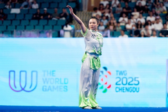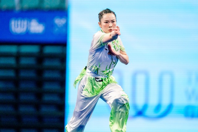 The 25-year-old made an immediate impression on Friday, taking the early lead in Changquan while wearing a striking white-and-green competition suit featuring panda and bamboo motifs. Her flawless execution earned her 9.750 points—the highest score in the discipline.