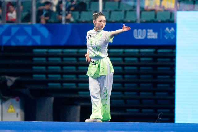 Hong Kong’s wushu star Lydia Sham Hui-yu delivered a stunning performance at the Chengdu World Games, clinching gold in the women’s Changquan, Jianshu, and Qiangshu all-around event.