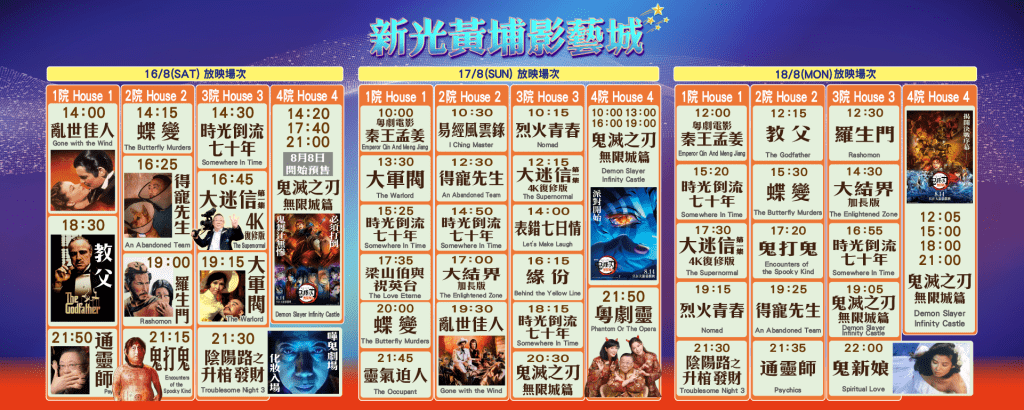 In addition to the classics, the beloved Japanese animated film "Demon Slayer: Kimetsu No Yaiba Infinity Castle" is set to have the most screenings, with a total of 13 showtimes.