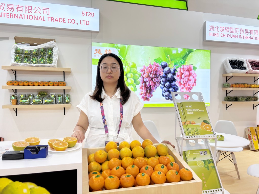 To, a representative from an international trade company based in Hubei, shared that her company primarily produces grapes, citrus, and oranges, targeting Southeast Asian markets such as the Philippines, Malaysia, Vietnam, and Thailand.