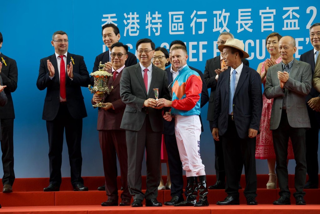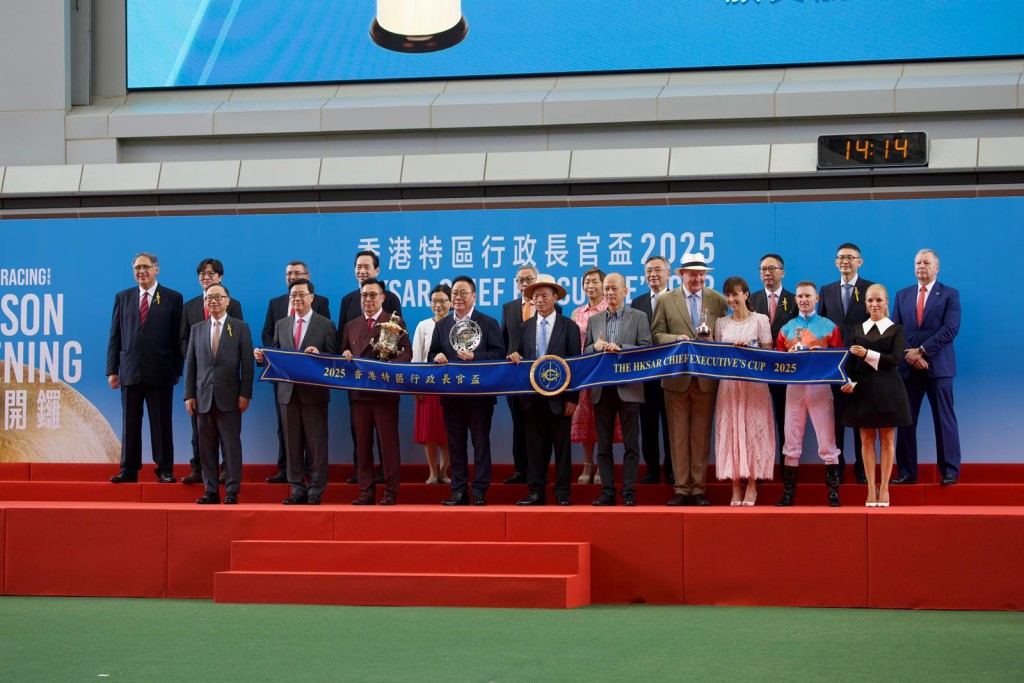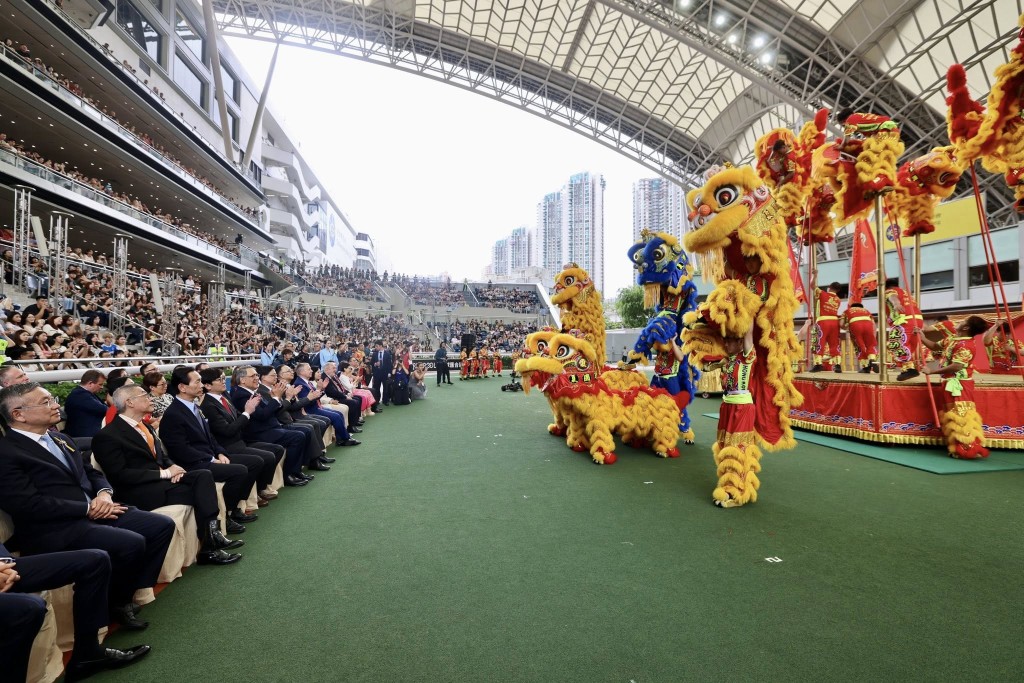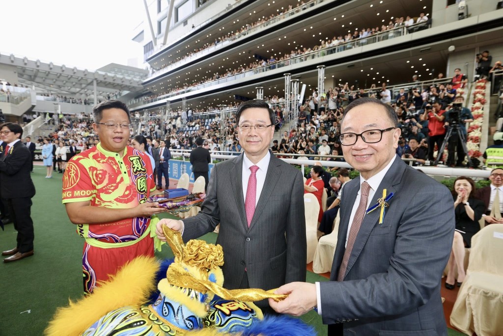 Chief Executive John Lee Ka-chiu officiated at the opening ceremony with eye-dotting of the ceremonial lions and striking the gong. He later presented the trophy to the winning connections of the Chief Executive's Cup event.