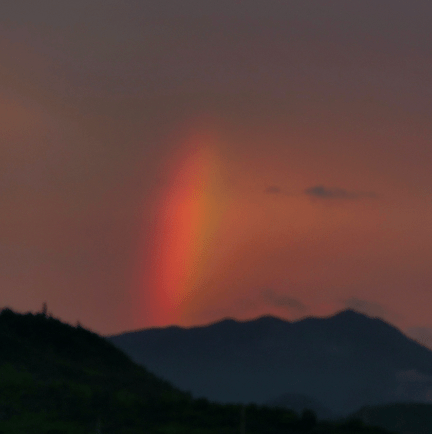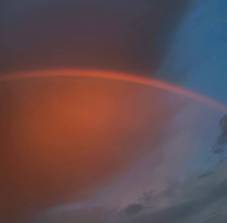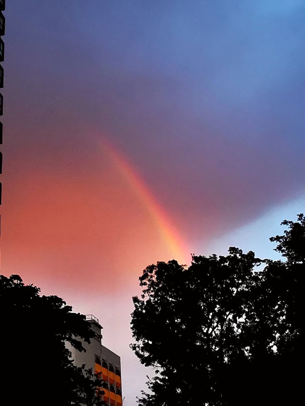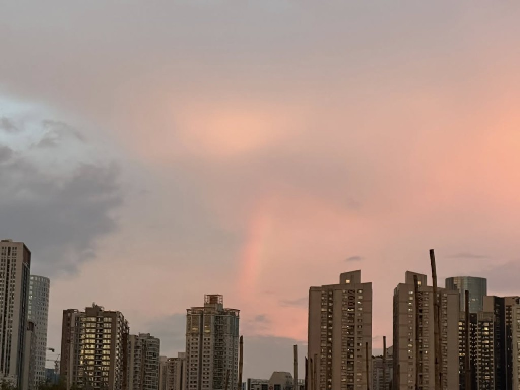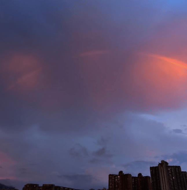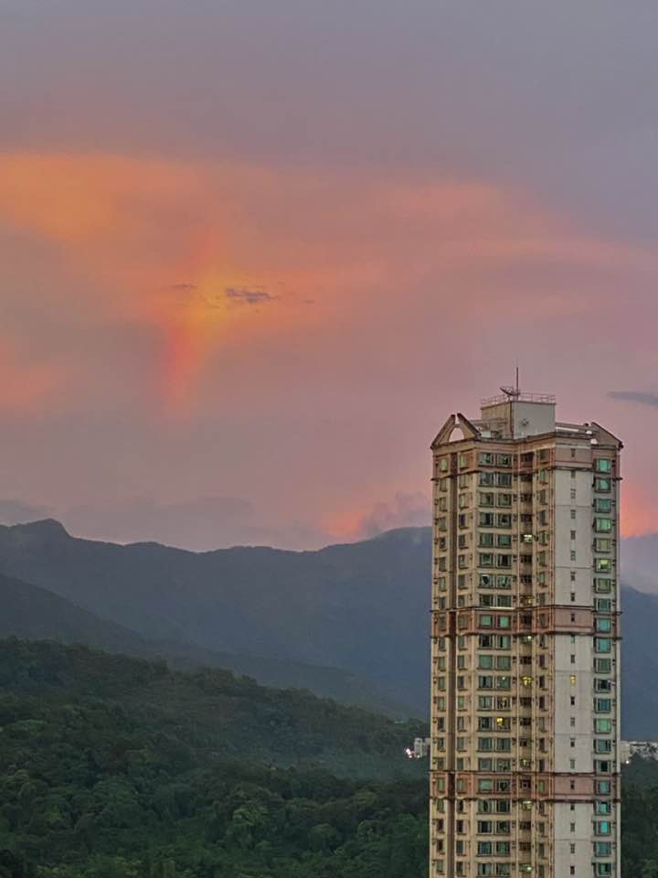 Despite the approaching storm, social media photos revealed beautiful rainbows appearing across multiple Hong Kong districts following Thursday's No. 1 typhoon signal. The "Community Weather Observation Scheme" Facebook group shared images of rainbows in Tai Po and Tin Shui Wai, while other users posted photos of striking fiery red skies over Hong Kong Island and the Northern District during evening hours, demonstrating that even typhoon conditions can create spectacular visual displays.