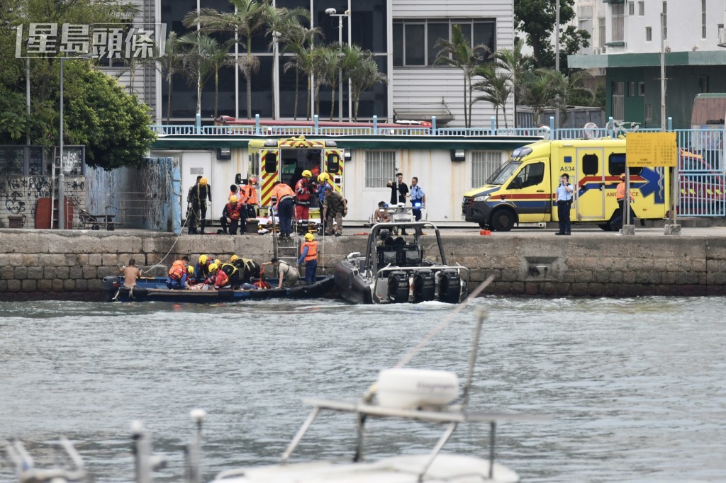 At around 3pm, police received a report from a man saying that people had fallen into the water near 60 Ka Yip Street. Emergency personnel rushed to the scene and pulled a man, a woman, and a young boy from the sea.