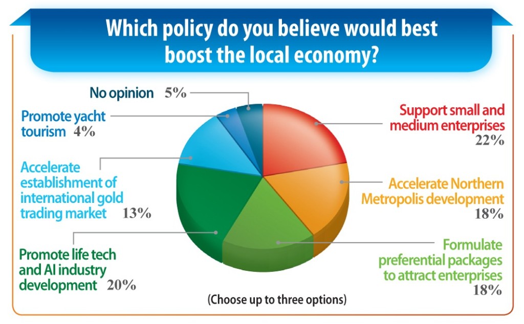 This was closely followed by the promotion of life technology and artificial intelligence industry development at 20 percent, and the development of the Northern Metropolis, along with policies to attract investment, at 18 percent.