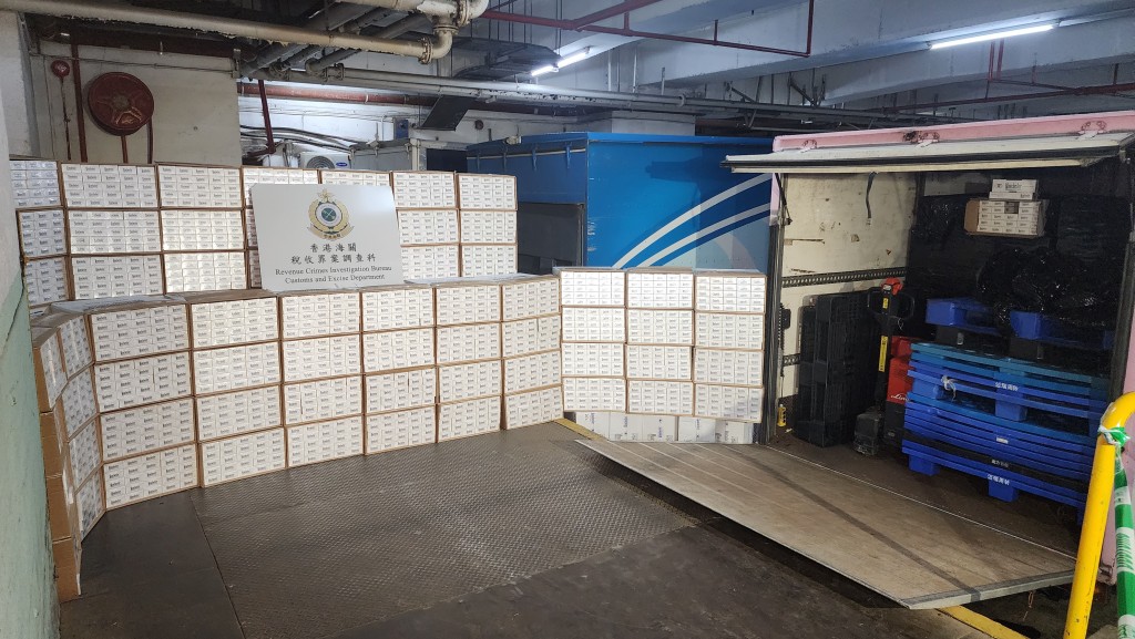 Customs officers have uncovered the largest illicit cigarette storage case since tobacco control ordinance were amended in mid-September, seizing about 6 million untaxed cigarettes valued at approximately HK$27 million, with a duty potential of around HK$20 million. A 54-year-old unemployed Vietnamese man was arrested during the operation in Tsuen Wan and Kwai Chung.