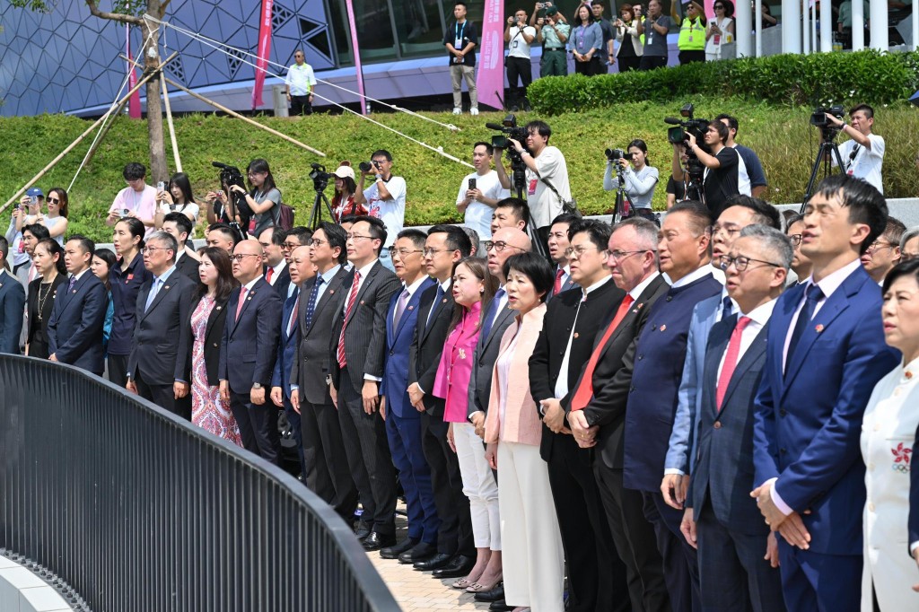 The ceremony commenced this morning at the South Garden of the main stadium, attended by officials including Secretary for Culture, Sports and Tourism Rosanna Law Shuk-pui, commissioner for tourism Vivian Sum Fong-kwang, Commissioner for Sports George Tsoi Kin-pan and lawmaker Bill Tang Ka-piu.