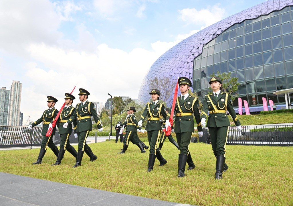 As "Ode to the Motherland" filled the air, guests stood solemnly while the Hong Kong Army Cadets Flag Guard marched in with pride and perfect synchrony.