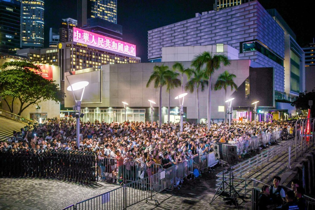 Citizens and tourists gathered around Tsim Sha Tsui and the Hong Kong Island waterfront, with some arriving before noon to find the perfect spot. Police have conducted gradual road closures for traffic control.