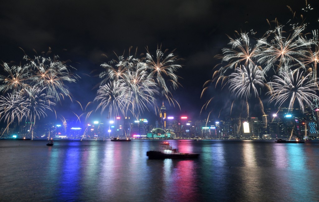 The grand display involved more than 30,000 firing shells launched from three barges and six pontoons, with the entire event costing approximately HK$18 million.