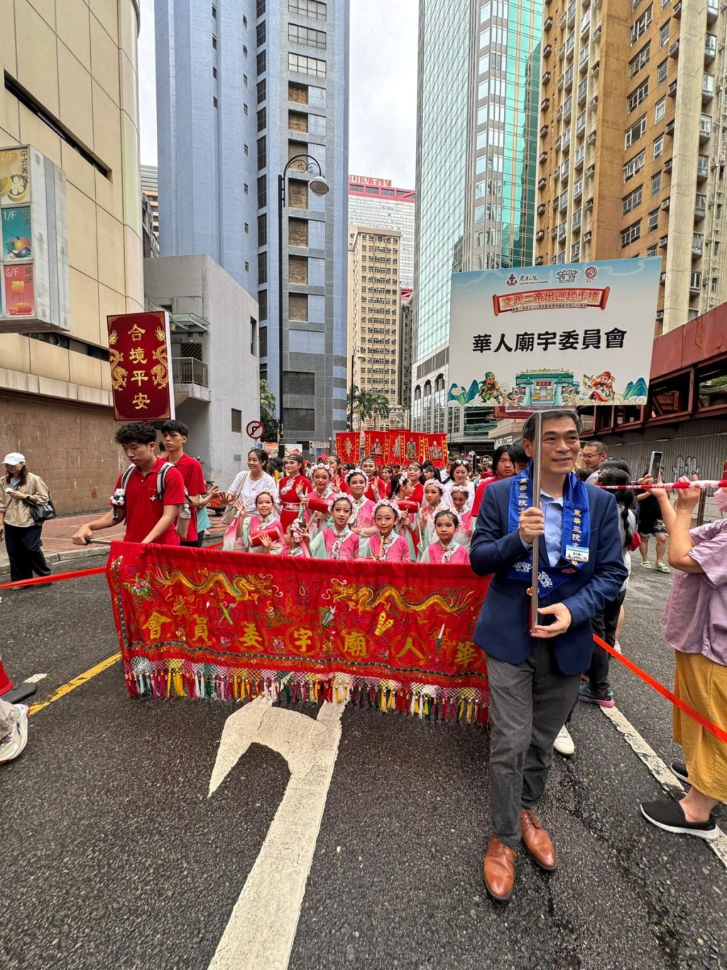 Around 500 participants marched to the historic Man Mo Temple on Hollywood Road, where the Autumn Sacrificial Rites were later held to pray for the well-being of Hong Kong's people.
