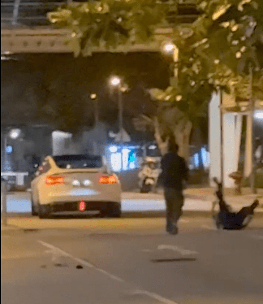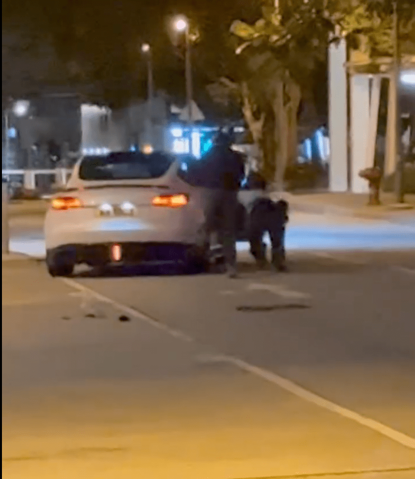 Online footage shows the Tesla speeding away as officers in uniform and plain clothes attempted to stop it. The uniformed officer appeared to be slightly hit by the vehicle before falling to the ground.