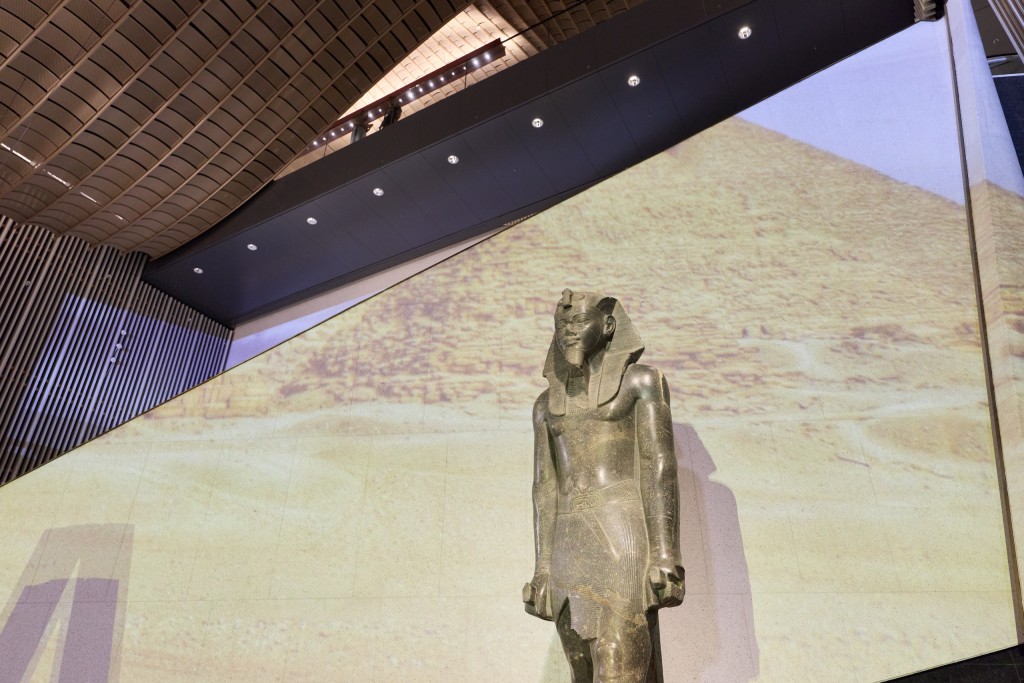 The towering 2.4-meter, 1,700-kilogram striding statue of Pharaoh Merenptah from the 19th Dynasty now stands on the ground floor.