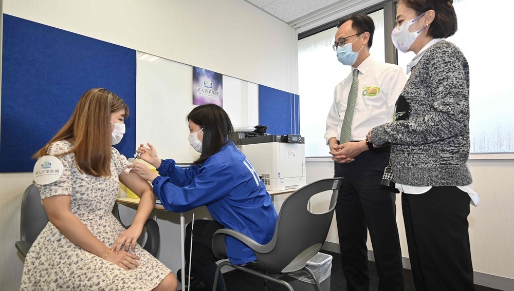 Separately, an outreach vaccination team was deployed to Chinese Estates Holdings Limited's office at Windsor House in Causeway Bay yesterday afternoon to administer the German-made BioNTech/Fosun vaccine for over 200 staffers and tenants, including the group's 69-year-old founder, Joseph Lau Luen-hung.